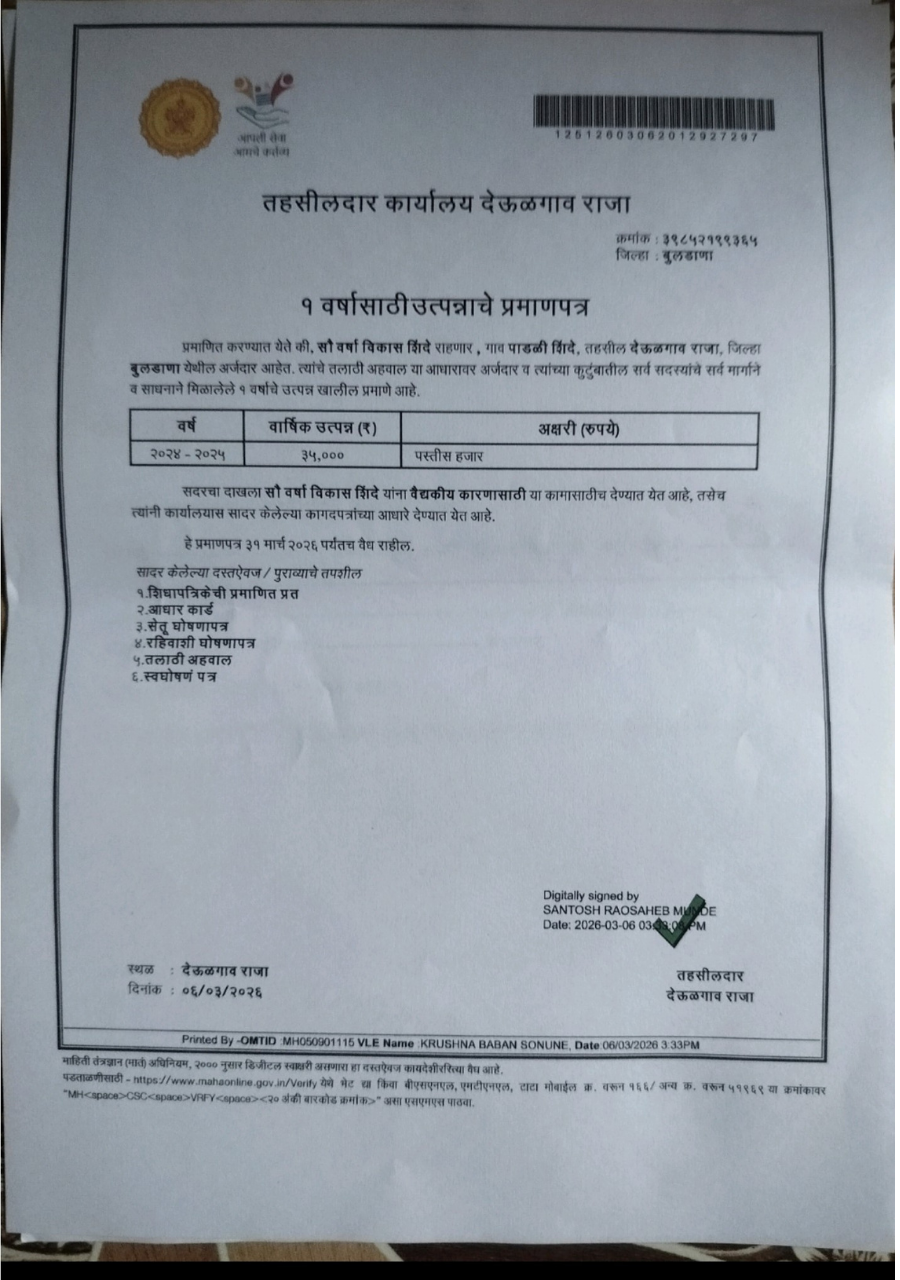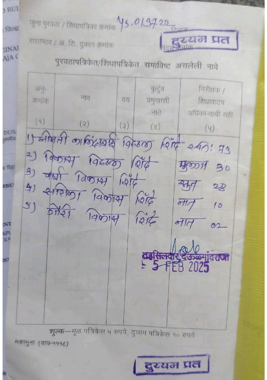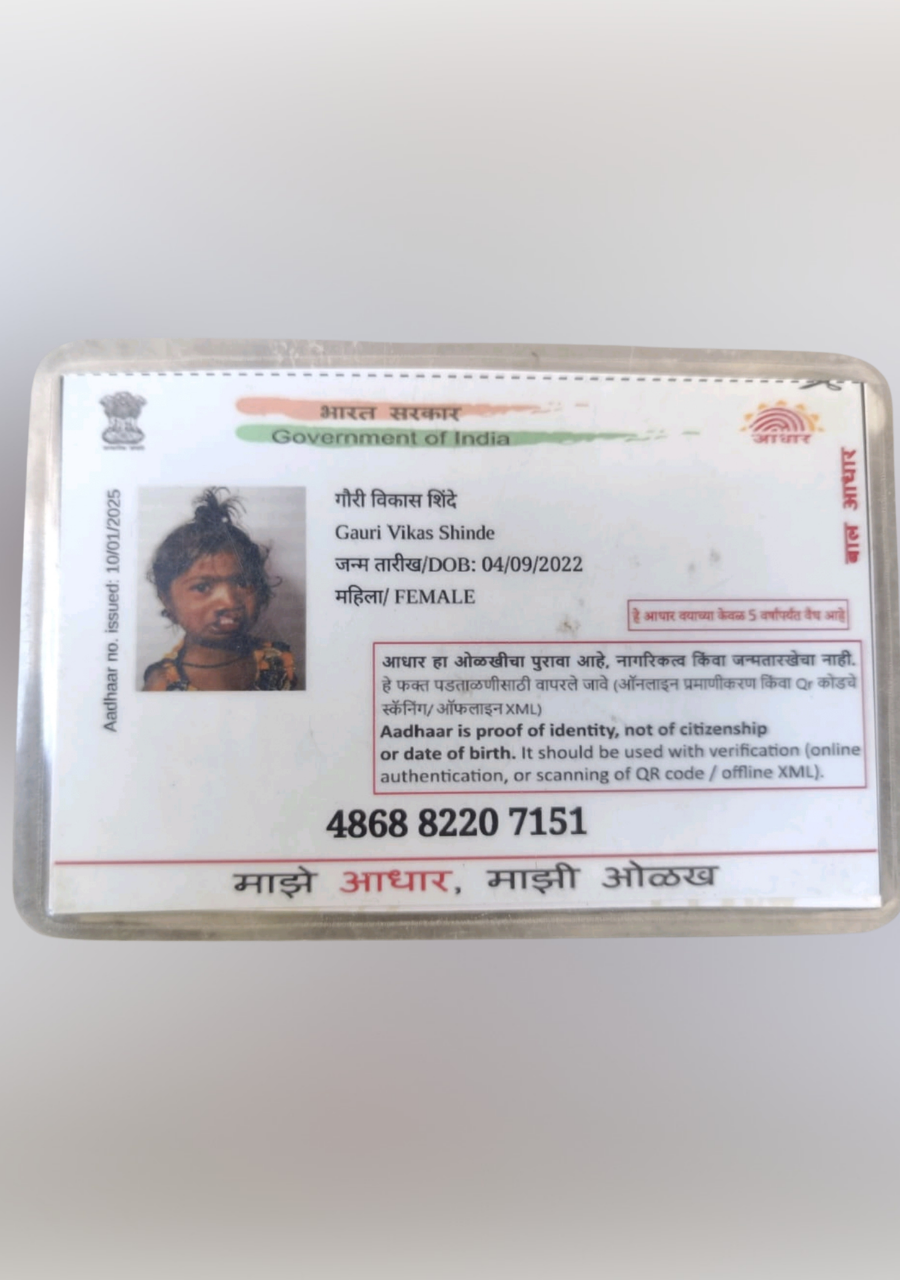 The child belongs to a financially vulnerable family. Her father, Mr. Vikas Shinde, is currently unemployed and struggling with alcohol dependency, making him unable to contribute financially. Her mother, Mrs. Varsha Shinde, is a homemaker who also works as a daily wage laborer in agricultural fields.