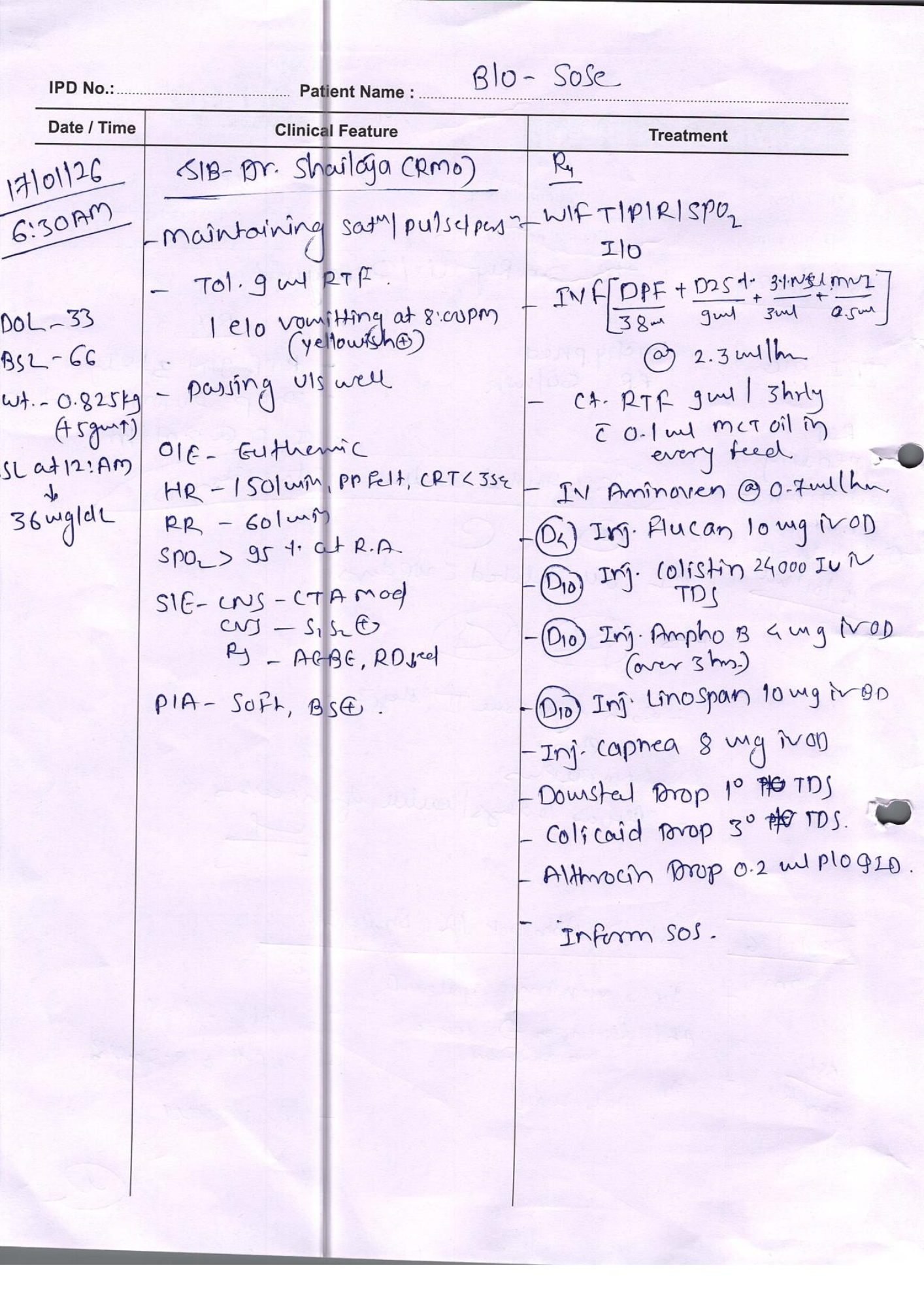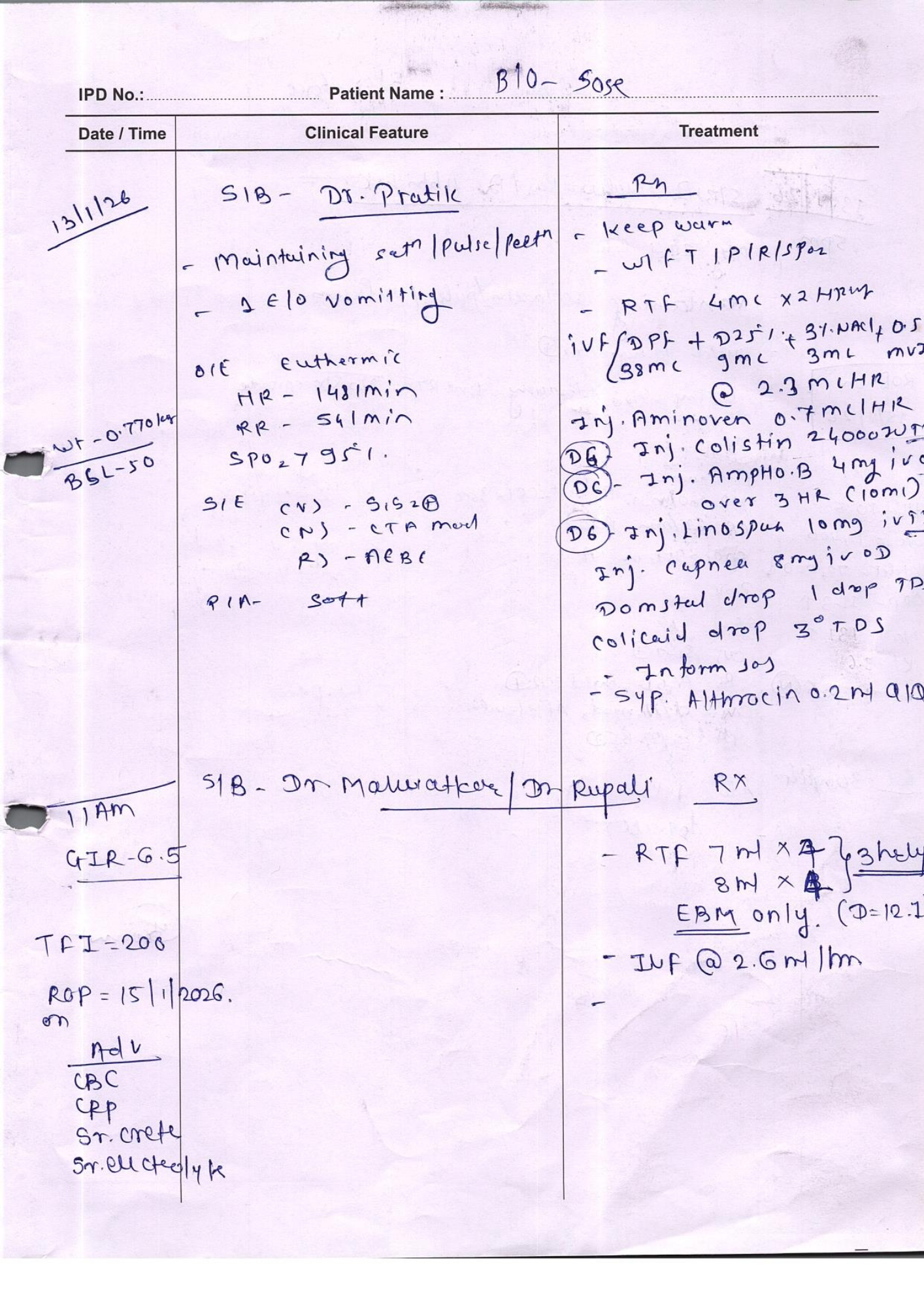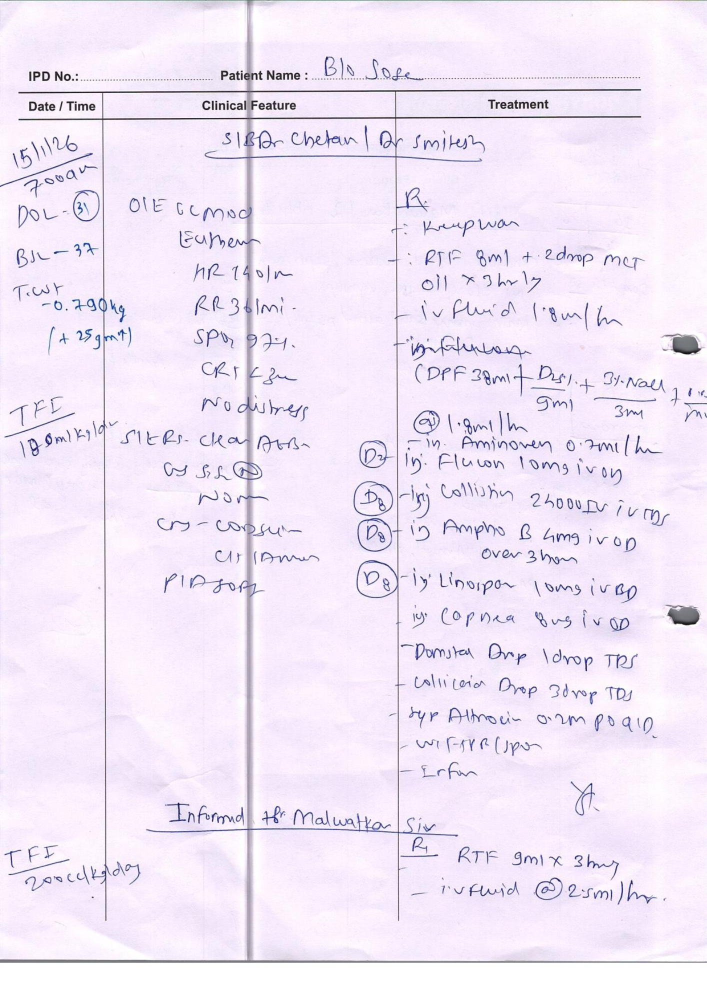 - Feeding intolerance and weight loss, with her weight dropping further to 790 grams