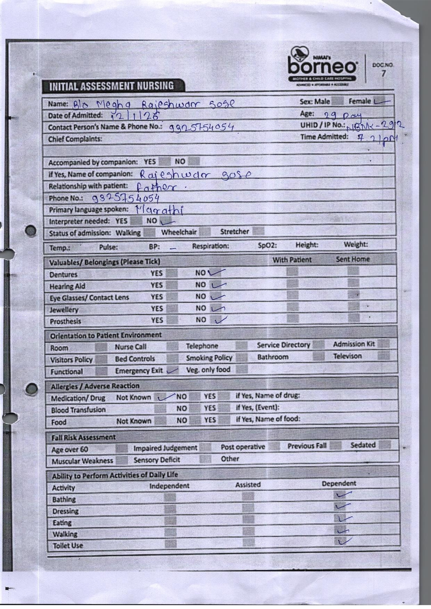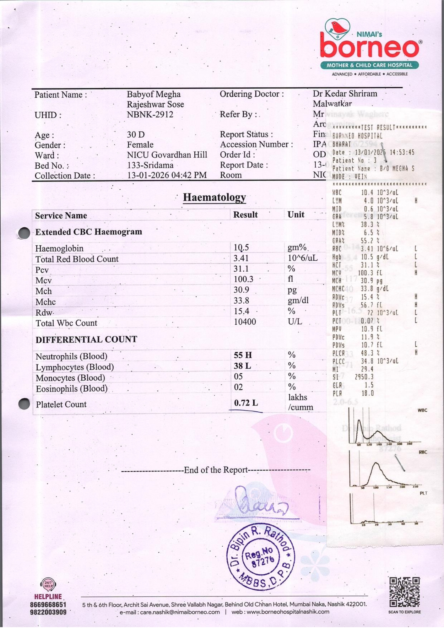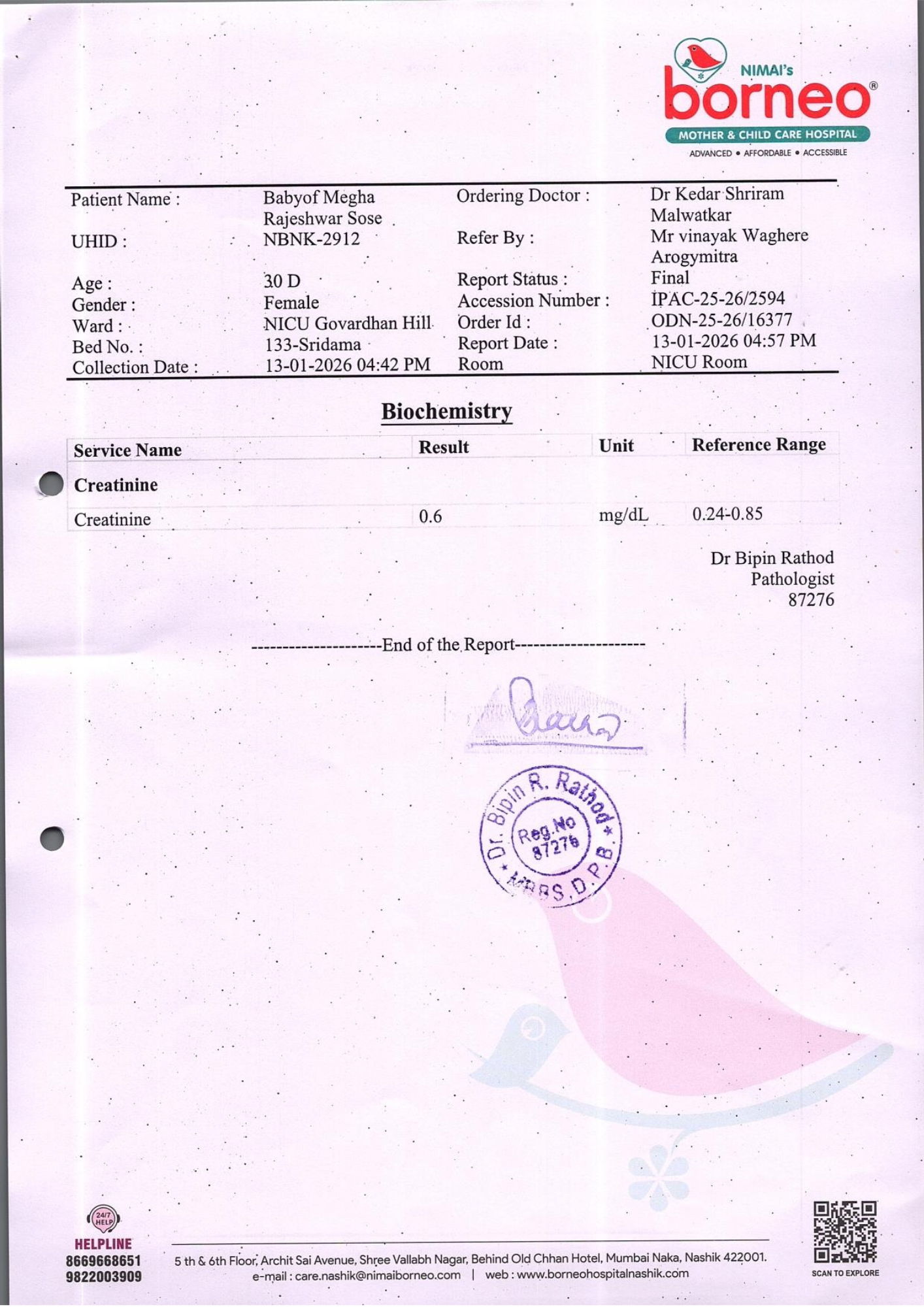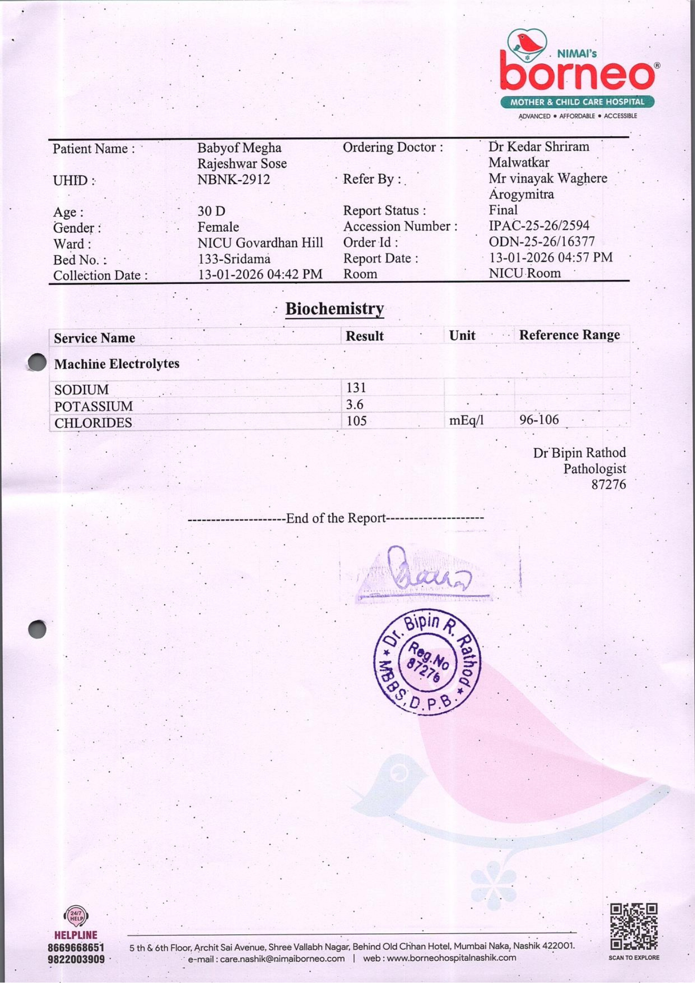 Baby of Megha Rajeshwar Sose, just one month old, is currently fighting for survival in the Neonatal Intensive Care Unit (NICU) at Nimai’s Borneo Mother and Child Care Hospital, Nashik. From the very moment she was born, her life has been a continuous medical battle. She was born extremely premature at 29 weeks and 1 day, weighing only 830 grams. Due to her fragile condition, she has remained in the NICU since birth, relying entirely on intensive medical care to stay alive.