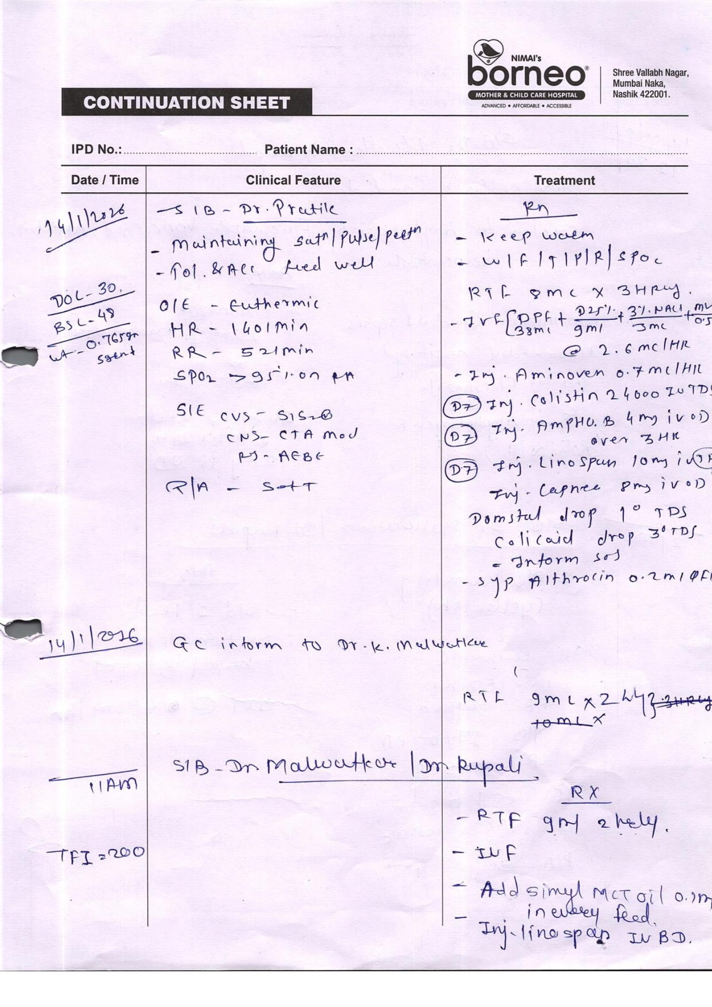 The treating medical team, led by Dr. Kedar Malwatkar, has advised a minimum 75-day intensive NICU care plan to stabilize the baby, control infections, support lung development, and help her gain weight safely.