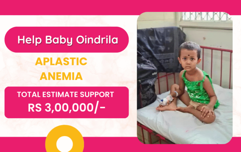Baby Oindrila Omkar Das, a 4-year-old child, has been courageously fighting Aplastic Anemia, a serious and life-threatening condition in which the body fails to produce sufficient healthy blood cells. While most children her age are playing and learning, Oindrila has spent her early years undergoing painful treatments and hospital visits.