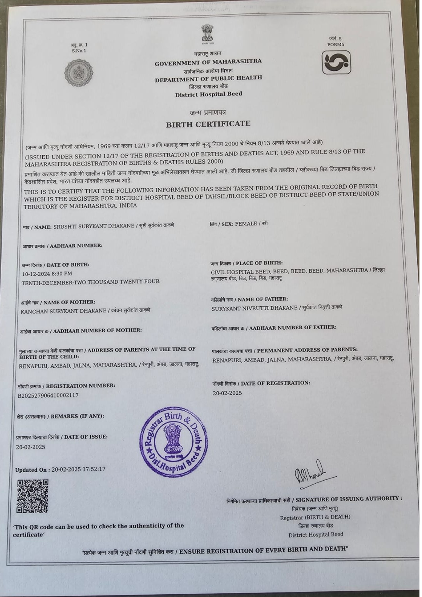 Shrusti’s father is the only earning member of the family and works as a struggling farmer with no stable income or savings. He strives daily just to provide basic necessities for the family. Her mother is a homemaker, and the family of five depends entirely on her father’s uncertain earnings for survival. Due to this sudden medical emergency, the family is emotionally distressed and financially incapable of managing the high treatment expenses.