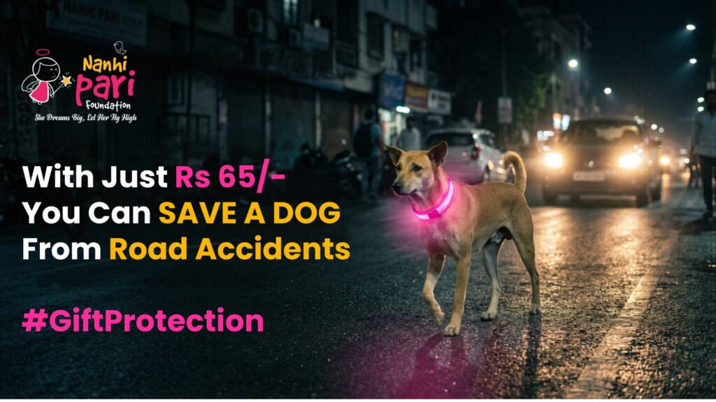 Every night, thousands of stray dogs struggle to survive on busy roads, often going unnoticed by passing vehicles. In low visibility conditions, these innocent animals are at constant risk of accidents. Through this campaign, Nanhi Pari Foundation aims to protect them by providing reflective safety collars that make them visible in the dark.