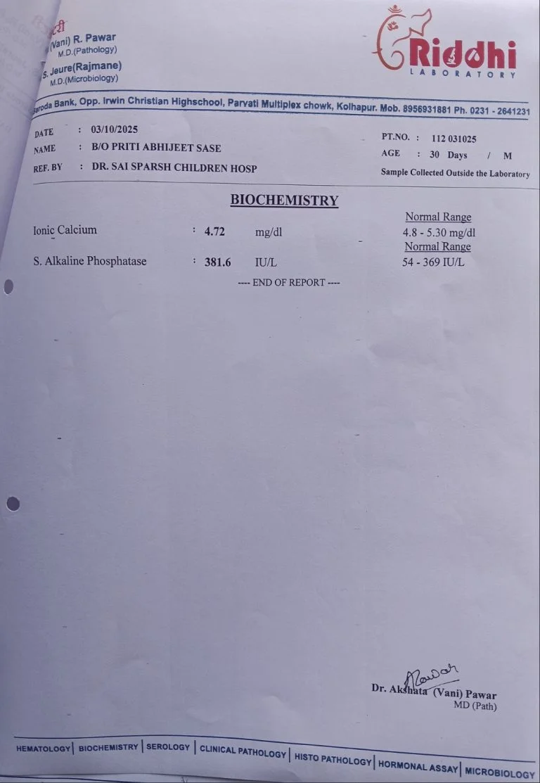 Today marks an important step in Baby Bhoomi’s journey—she has begun her Day Care Tests (25 tests in 25 days). Once these tests are successfully completed, she will undergo her life-saving surgery.