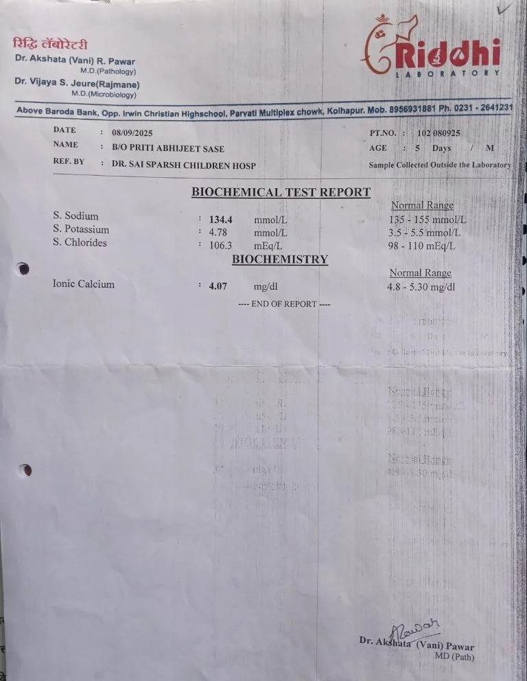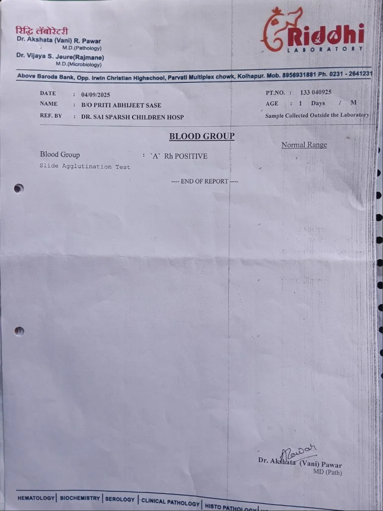 The baby’s father, Mr. Abhijit Sase, works in a private company and earns around ₹12,000 per month, while her mother, Mrs. Preeti Sase, is employed at a small firm with a monthly income of ₹10,000. They live in a rented house in Kolhapur, paying ₹6,000 rent each month.