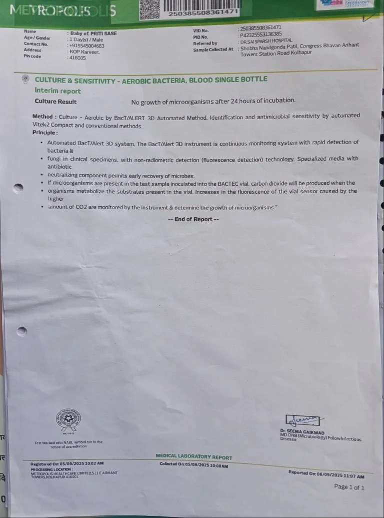 Meet the Baby of Mrs. Preeti Sase, a fragile newborn who entered this world far too early. Born prematurely at just 28 weeks and weighing only 850 grams, this tiny warrior is fighting for her life in the NICU under intensive critical care. She currently requires ventilator support, specialized medications, and round-the-clock monitoring to survive.