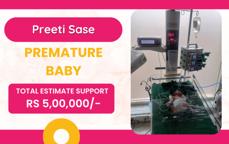 Meet the Baby of Mrs. Preeti Sase, a fragile newborn who entered this world far too early. Born prematurely at just 28 weeks and weighing only 850 grams, this tiny warrior is fighting for her life in the NICU under intensive critical care. She currently requires ventilator support, specialized medications, and round-the-clock monitoring to survive.