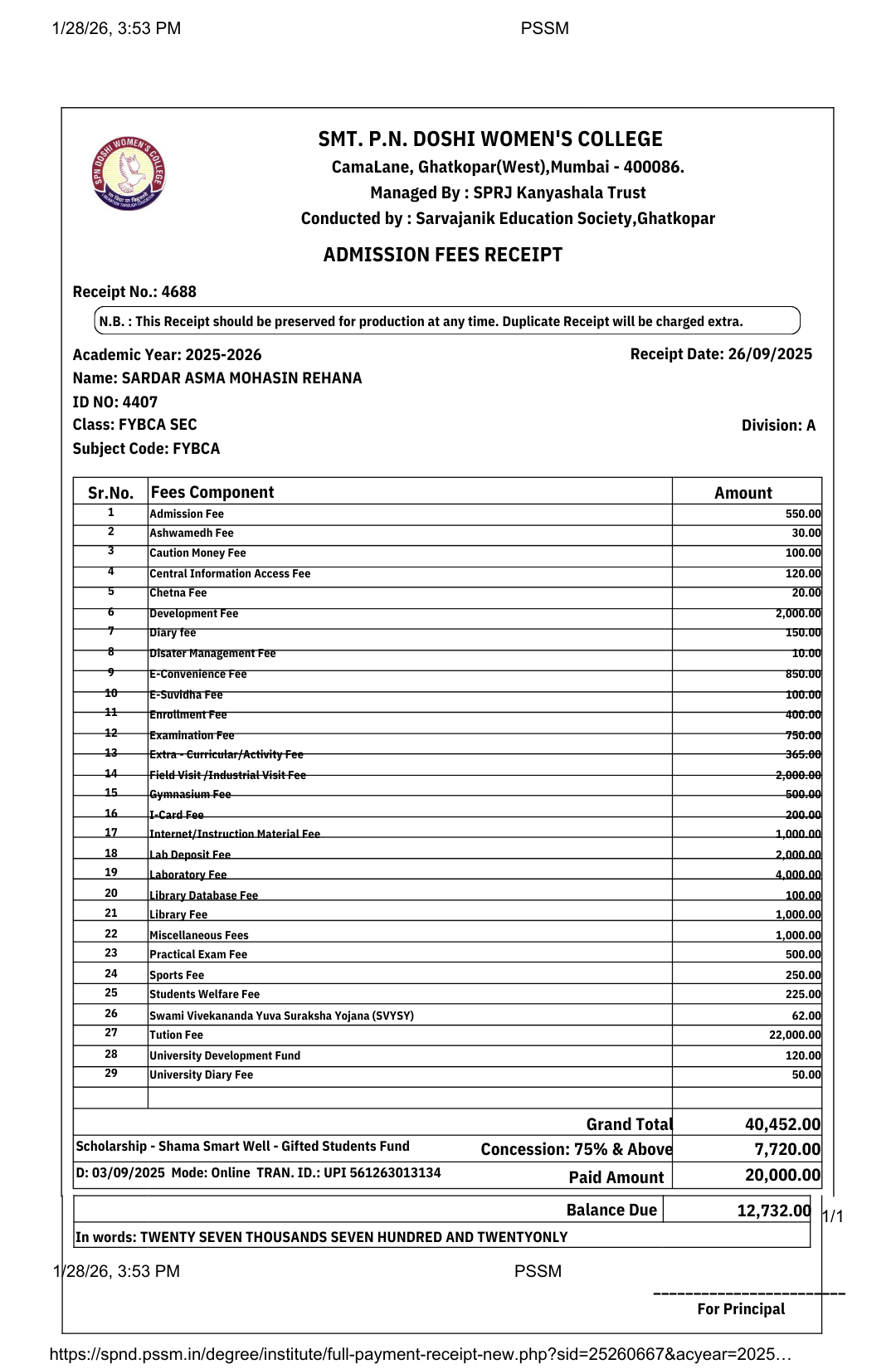 She secured 82.50% in the previous academic year (2024–25), showing strong academic performance despite financial constraints.