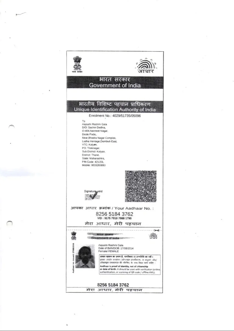 Aayushi is being raised by her mother, Mrs. Rashmi Gala, a single mother and the sole earning member of a 4-member family. She works as a housekeeper and earns only ₹9,000 per month, which is barely sufficient to manage household expenses. Due to this limited income, the family often struggles to meet even basic daily necessities.